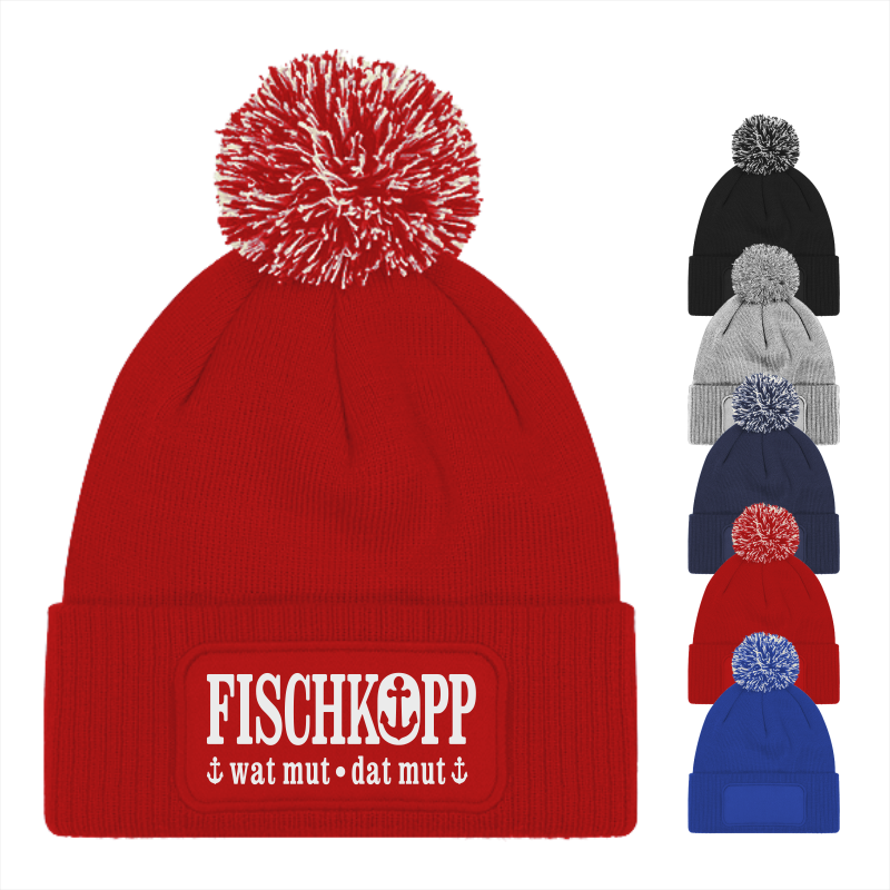 Mütze FISCHKOPP (auf Patch) mit Bommel #443